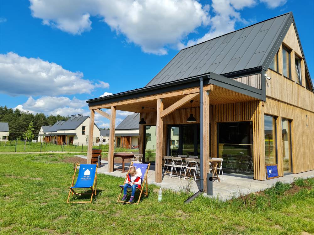Moje Miejsce Jura to nie tylko domy z ogródkami, to również duży teren rekreacyjny, na którym Goście mogą korzystać z placu zabaw dla dzieci, boisk sportowych do gry w piłkę nożną, siatkówkę plażową oraz badmintona. Do dyspozycji jest również sezonowy basen zewnętrzny z podgrzewaną wodą oraz całoroczna sauna z balią do morsowania. Nasi Goście mogą rozpalić ognisko w jednym z miejsc do tego przygotowanych. Do ich dyspozycji jest suche drewno oraz akcesoria do pieczenia kiełbasek. W każdym z domów znajduje się grill ogrodowy. Na terenie osiedla znajduje się ogólnodostępna świetlica. Dla czworonożnych przyjaciół przygotowaliśmy psi plac zabaw - tor sprawnościowy typu agility. Można wypożyczyć rowery lub skorzystać z ogólnodostępnych hulajnóg terenowych, a w sezonie zimowym z sanek.