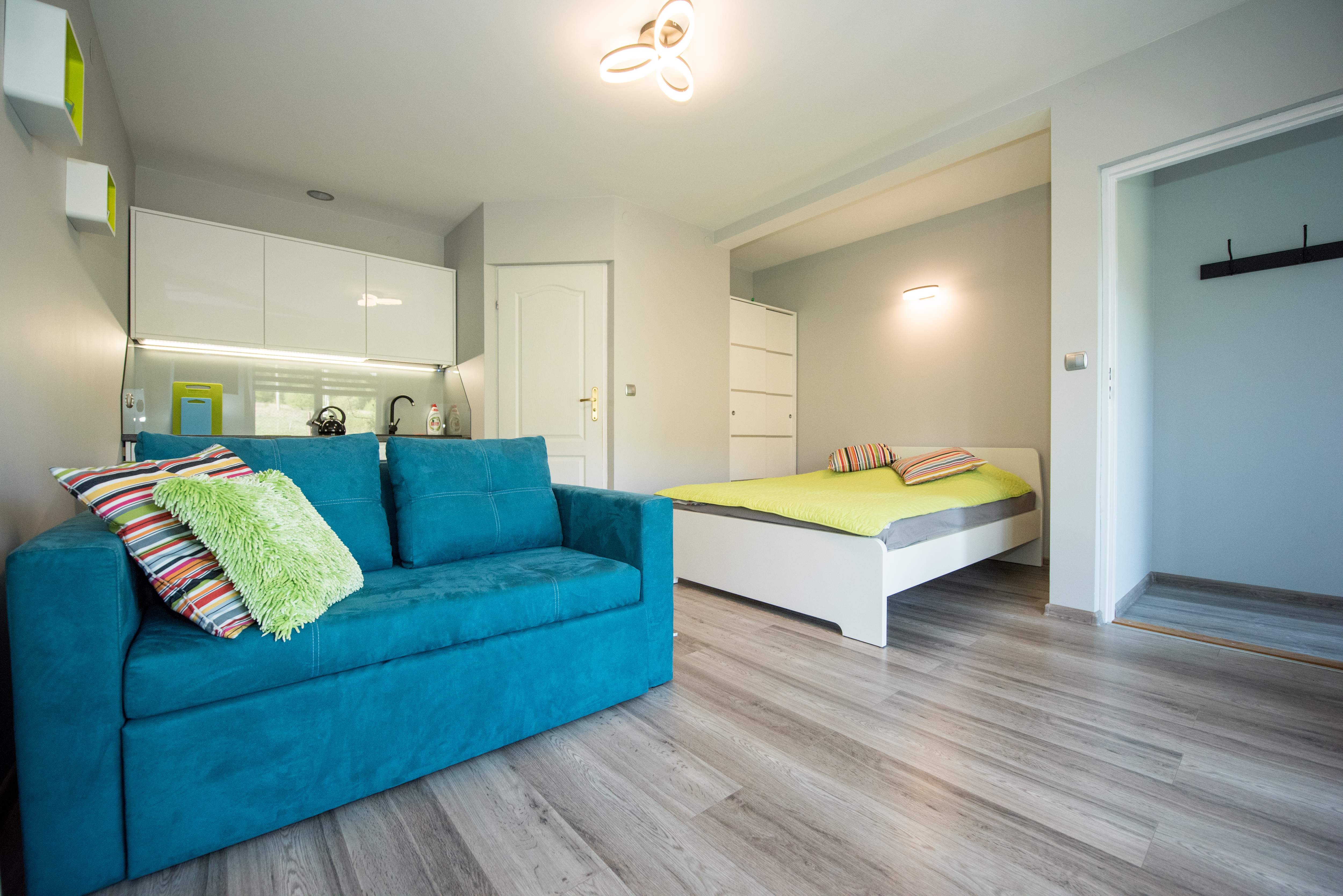 Do dyspozycji znajduje się również w pełni wyposażona kuchnia. Każdy z tych pokoi posiada wyjście na własny zadaszony taras skąd rozciągają się piękne widoki na ruiny zamku.