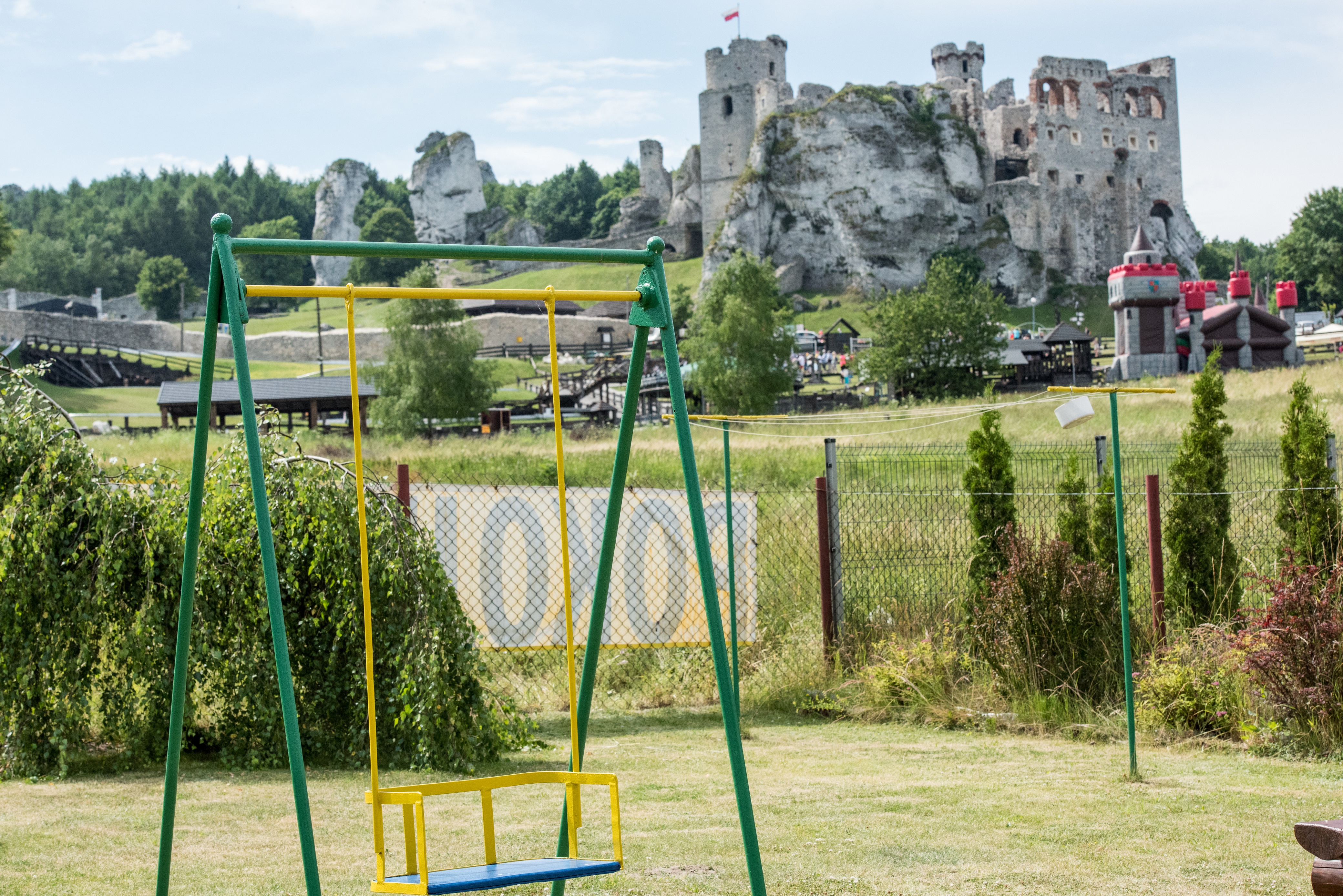 Na ogrodzonym terenie z przyciętą trawą znajduje się plac zabaw dla dzieci, miejsce na ognisko z ławkami, oczko wodne z rybkami. Do dyspozycji gości dostępna jest również duża wolno stojąca altana z zabudowanym grillem, dużym stołem, ławami i huśtawką. Na placu można postawić samochód. Z każdego miejsca można podziwiać piękne widoki lasów, skał wapiennych i zamku.