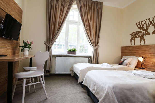 Łącznie dostępnych jest 60 miejsc noclegowych w nowocześnie wykończonych pokojach, dwu- i trzy-osobowych oraz apartamentach wyposażonych w łazienki z prysznicem, WC i TV satelitarną oraz bezpłatny dostęp do internetu.