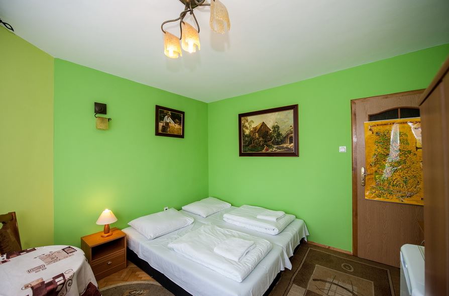 W domu znajdują się pokoje 2, 3 i 4 osobowe o wysokim standardzie z łazienkami, wyposażone w lodówkę, czajnik i naczynia.