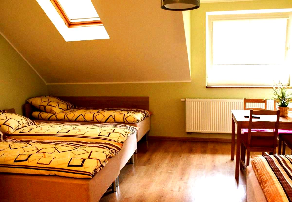 Oferujemy pokoje dwu-, trzy- oraz czterosobowe o wysokim standardzie, wyposażone w łóżka pojedyńcze (z możliwością łączenia w małżeńskie), łazienki, Internet WiFi oraz TV.
