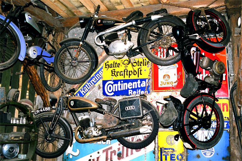 W Muzeum zgromadzono około 100 pojazdów (głównie z lat 1910-1945), z których tylko część jest w pełni odrestaurowana. Prócz nich są tu także silniki, baki i inne motocyklowe części, tablice rejestracyjne i tym podobne. Do najcenniejszych maszyn należą: Zündapp EM 250 z 1925 roku, Benelli 500 SV z końca lat 30. ubiegłego wieku, NSU 351 z roku 1936, BSA 500 z 1931, BMW R3 z 1936, Indian SV Prince, czy francuski motocykl wojskowy Gnome et Rhône, a także maszyny firm AJS, ARIEL, DKW i wielu innych.