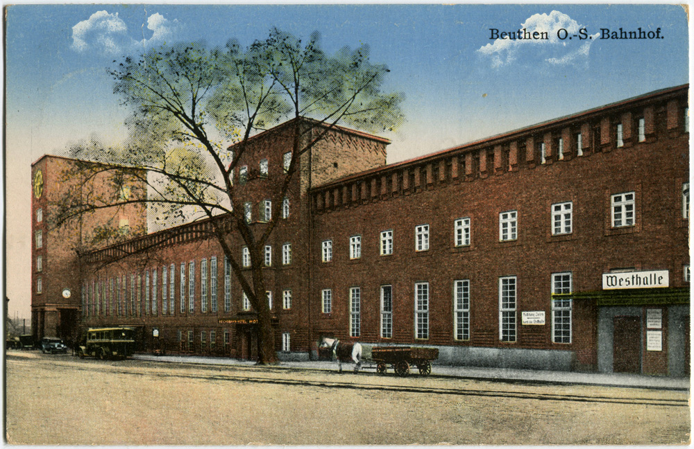 Bytomski dworzec kolejowy na pocztówce z 1932 r., ze zbiorów Czesława Czerwińskiego