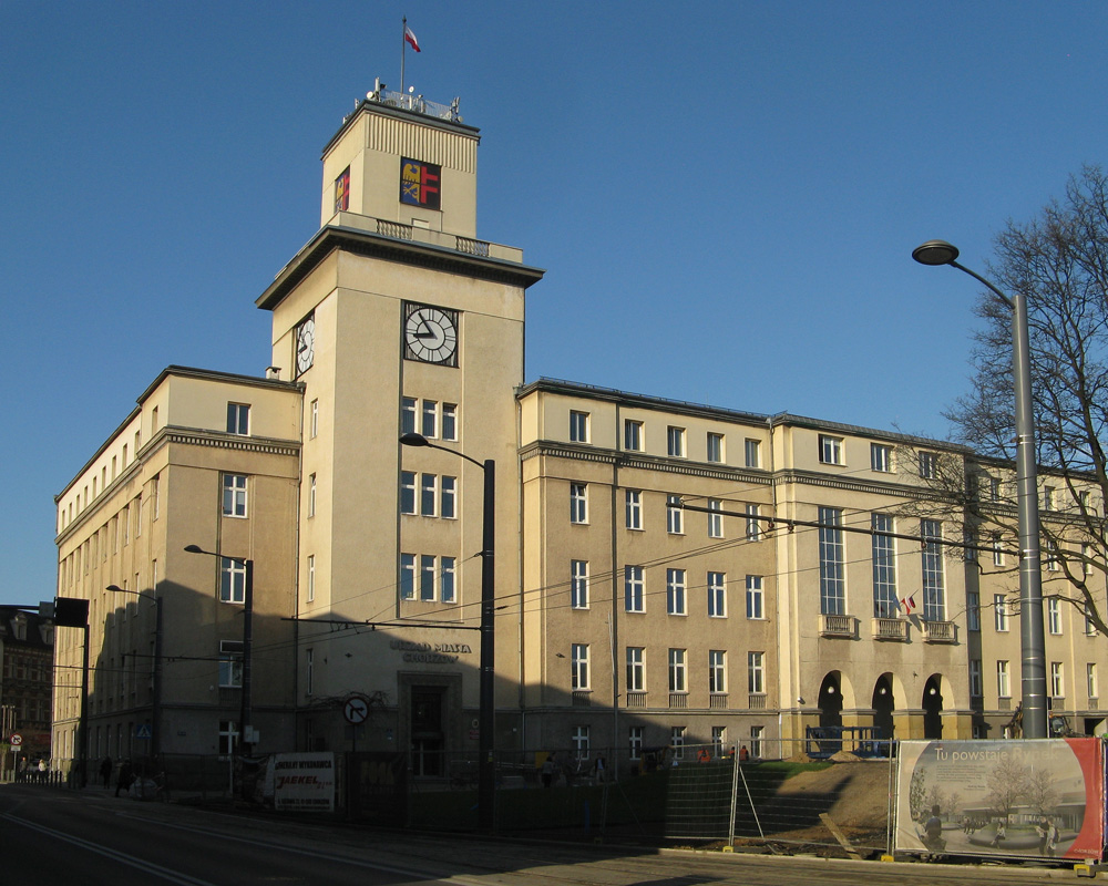 Chorzów, ratusz w modernistycznym kostiumie, foto Adrian Tync wikipedia