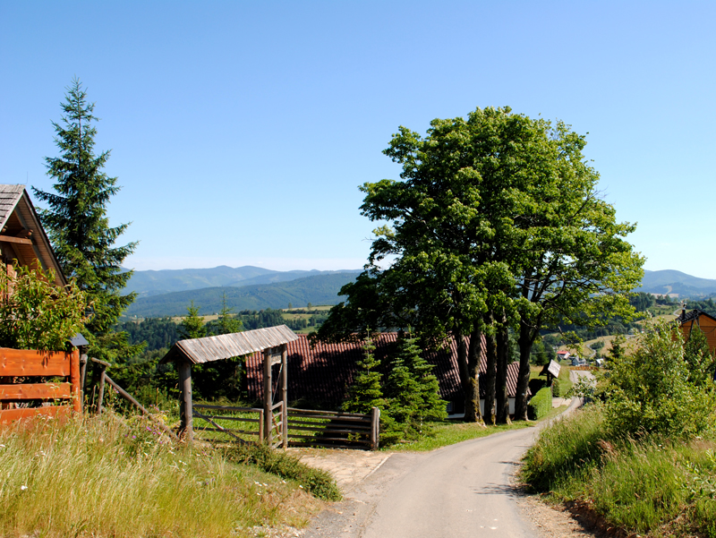 Naszą pieszą wycieczkę zaczniemy vis a vis wspomnianego Centrum Koronki Koniakowskiej, tu bowiem na przystanku autobusowym spotkamy żółty szlak turystyczny, prowadzący przez istebniańskie Zaolzie do Wisły Głębiec. Drogą, prowadzącą w kierunku koniakowskiego kościoła parafialnego św. Bartłomieja i Istebnej, idziemy kilkaset metrów, by skręcić w kierunku północnym – w dół – ku dolinie Olzy. Wąziutka asfaltowa droga, godząca zmotoryzowanych, rowerzystów i turystów pieszych wije się między przysiółkami, by po trzydziestu minutach niezbyt szybkiego marszu doprowadzić nas do mostu na Olzie. Jesteśmy w Istebnej – Zaolziu.