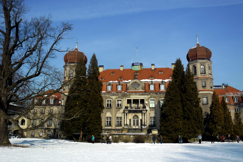 Brynek, dawny pałac Donnersmarcków w wersji letniej i zimowej, foto Edward Wieczorek