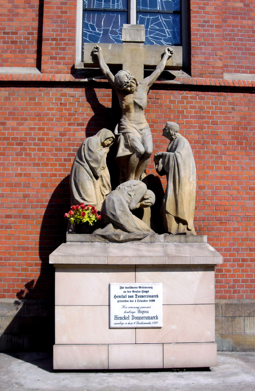 Bytom, krzyż, upamiętniający śmierć Hugona I Henckel von Donnersmarcka przy kościele Św. Trójcy, foto Edward Wieczorek