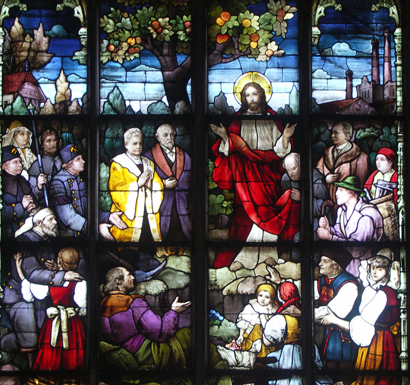Spadkobierczyni Karola Goduli Joanna hr. von Schomberg-Godulla i jej mąż hr. Ulrich Schaffgotsch na witrażu kościoła w Rudzie Śląskiej – Goduli, foto Edward Wieczorek