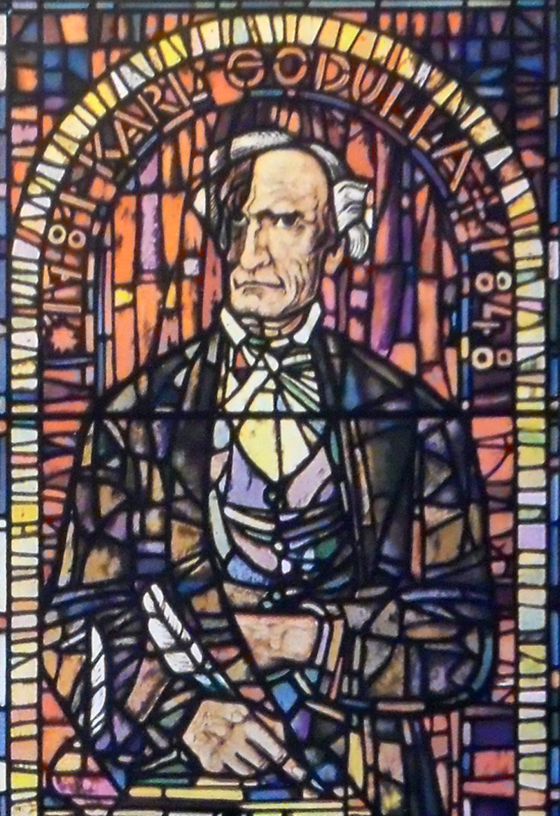 Nie zachował się żaden wizerunek Karola Goduli (obraz, rycina). Ten najpopularniejszy, prezentowany powyżej i multiplikowany w wielu różnych postaciach, to witraż Petera Ludwiga Kowalskiego, który wraz z trzema innymi, miał ozodbić gliwicką siedzibę Towarzystwa Górniczo-Hutniczego. Wszystkie witraże zaginęły w czasie II wojny światowej. Zachowały się tylko ich barwne projekty.