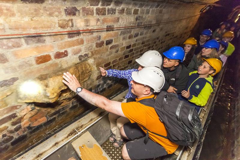 Zabrze, młodzi turyści w Sztolni Królowa Luiza - strefa "Wilhelmina", foto J. Koenighaus arch MGW Zabrze