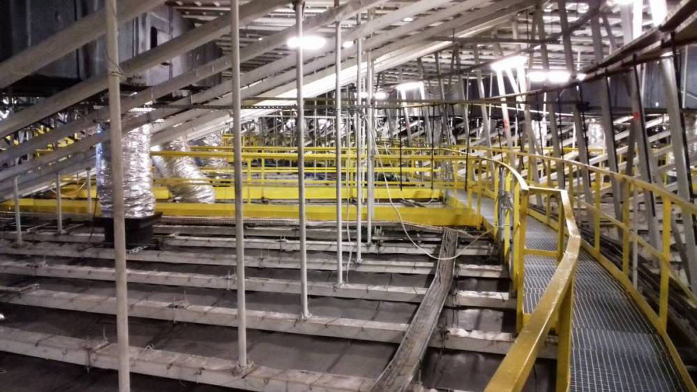 Strop techniczny "Spodka", widoczne ciągi lin nośnych konstrukcji dachu, foto Edward Wieczorek