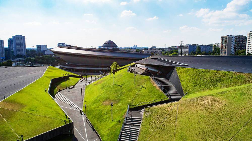 "Spodek" od strony Strefy kultury, której jest integralną częścią, foto slaskie.travel