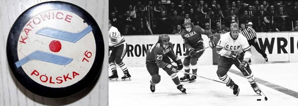 Oficjalny krążek MŚ w Hokeju na Lodzie Grupy A i fragment meczu Polska:ZSRR