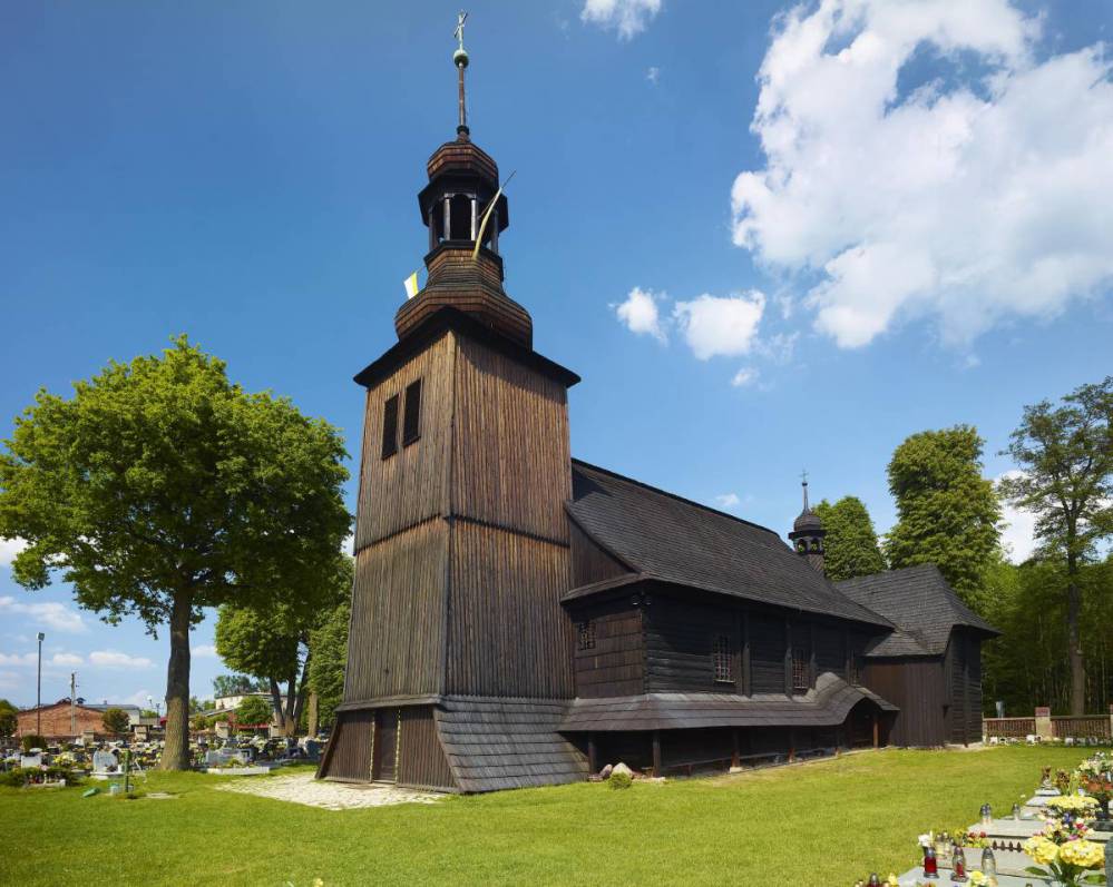 Gdybyśmy pojechali drogą 907 prosto, po niespełna 800 metrach dotarlibyśmy do drewnianego kościoła św. Jana Chrzciciela – obiektu Szlaku Architektury Drewnianej województwa śląskiego.