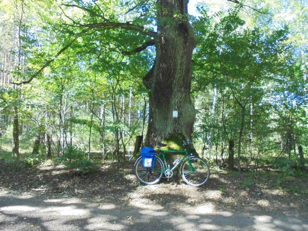 Piłka, dąb przy ul. Koszęcińskiej (i rower dla porównania jego grubość), foto Edward Wieczorek
