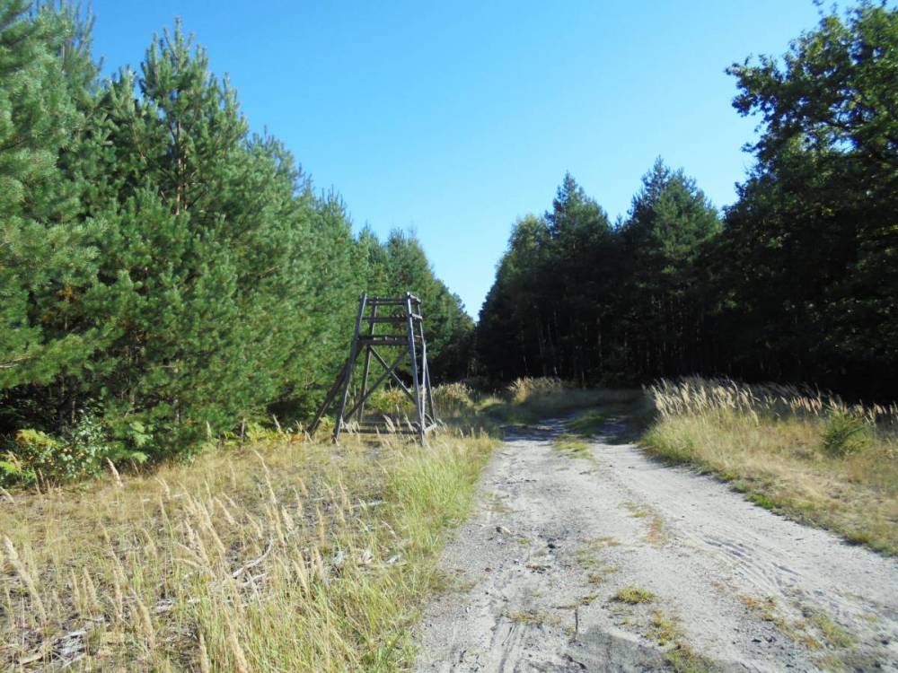 Przejeżdżamy przez teren dawnej wsi i za krzyżem osiągamy wyraźną gruntową drogę. Skręcamy na niej w prawo i kierujemy się północny wschód. Po chwili, przy myśliwskiej ambonie, wyraźna droga skręca w prawo, a my kierujemy się przecinką – na wprost. Jadąc cały czas konsekwentnie (na wszystkich leśnych skrzyżowaniach) prosto, po 5 kilometrach dotrzemy do miejsca wypoczynkowego z domkiem Randez Vous.