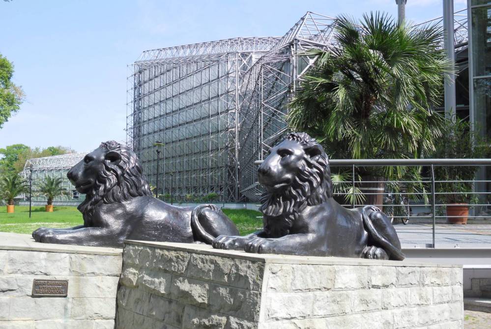 Gliwice Palmiarnia Miejska - pawilon wejściowy i lwy, autorstwa Johanna Gotfrieda Schadowa, odlane w 1830 r. w gliwickiej Królewskiej Odlewni Żeliwa, foto Edward Wieczorek