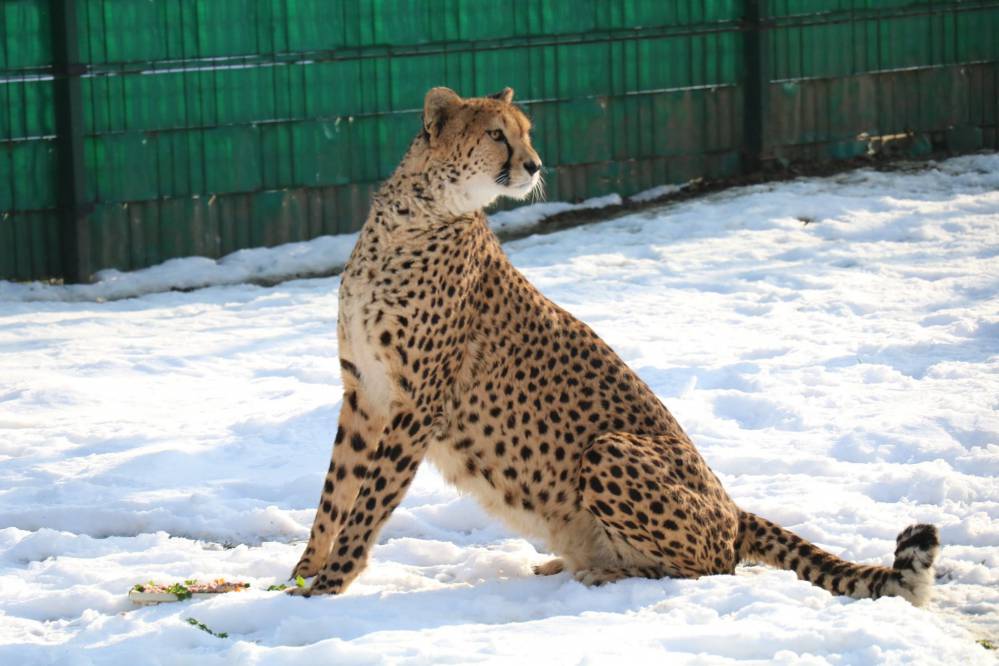 Śląski Ogród Zoologiczny w Chorzowie. Gepardowi - jak widać - zima nie przeszkadza, foto archiwum ZOO