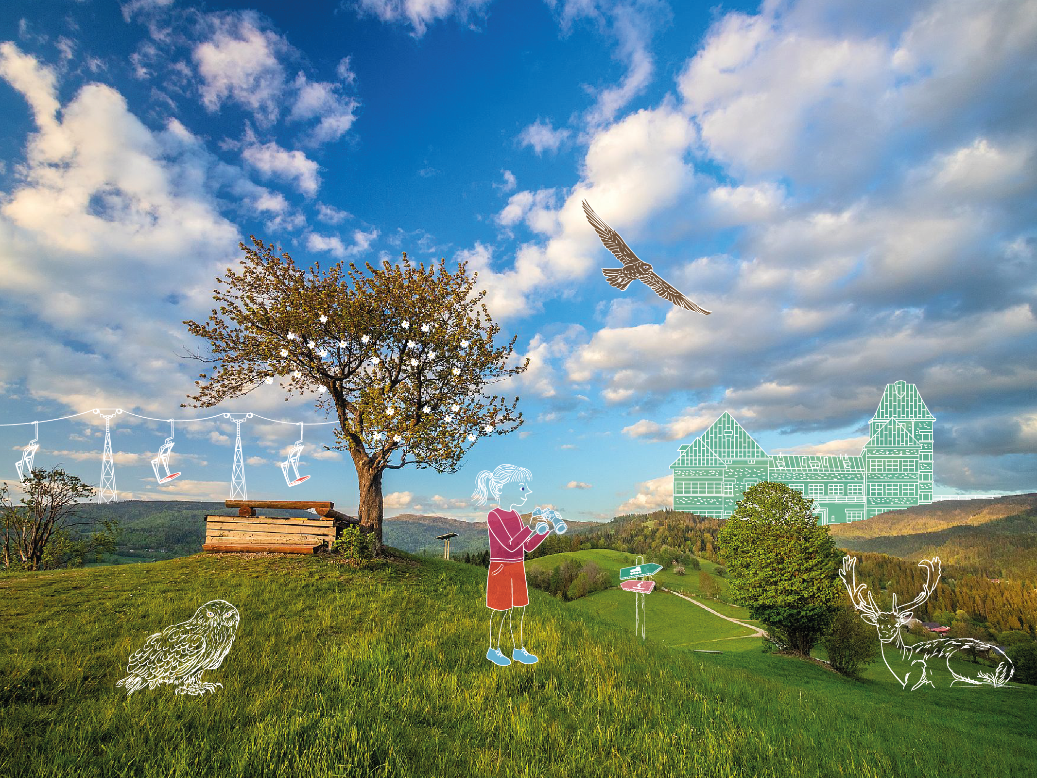 A może… rodzinny piknik pod Magicznym Drzewem na Cieńkowie? Nawet koc nie jest potrzebny, bo są tam ławeczki, na których można wygodnie usiąść. Wiśnia rośnie tu od stu lat, ma 160 centymetrów obwodu i osiem metrów wysokości. Od stu lat towarzyszy jej też piękna legenda – kto pocałuje swoją wybrankę pod tym drzewem, może liczyć na spełnioną miłość. Ja jednak wierzę, że legenda gwarantuje też szczęście i miłość każdej rodzinie, która poprzytula się pod wiśnią. Zresztą… takie bajki spełniają się głównie tym, którzy mocno w nie wierzą. Będąc w Beskidach z dzieckiem można więc bez wstydu przytulić drzewo i być szczęśliwszym.