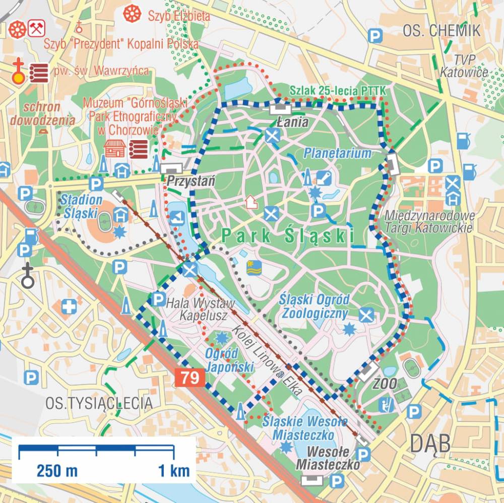 PARK ŚLĄSKI JEST JEDNĄ Z NAJWIĘKSZYCH ATRAKCJI GÓRNOŚLĄSKIEGO OKRĘGU PRZEMYSŁOWEGO. Został on utworzony na terenie dawnych hałd. Pierwsze prace przekształceniowe zaczęto prowadzić na początku lat 50-tych. Wśród najważniejszych atrakcji Paku Śląskiego można wymienić: Planetarium – Śląski Park Nauki (największe i najstarsze w Polsce), skansen „Górnośląski Park Etnograficzny w Chorzowie”, Śląski Ogród Zoologiczny, Kolej Linową „Elka”, Stadion Śląski, „Legendię” Śląskie Wesołe Miasteczko oraz Rosarium. Obecnie Park Śląski jest jednym z największych śródmiejskich parków w Europie. Ciekawostką jest fakt, że Park Śląski ma większą powierzchnię niż nowojorski Central Park! Nie sposób zwiedzić wszystkich atrakcji Parku Śląskiego w jeden dzień, dlatego zalecamy, aby zaplanować co najmniej kilka wizyt w Parku Śląskim, łącząc dowolnie wybrane atrakcje.