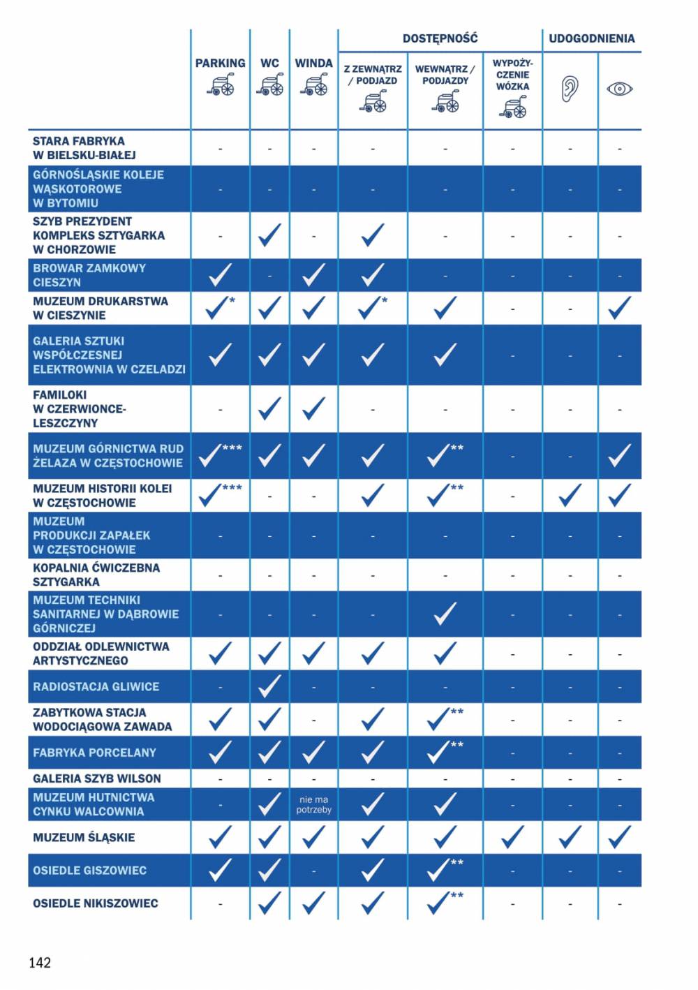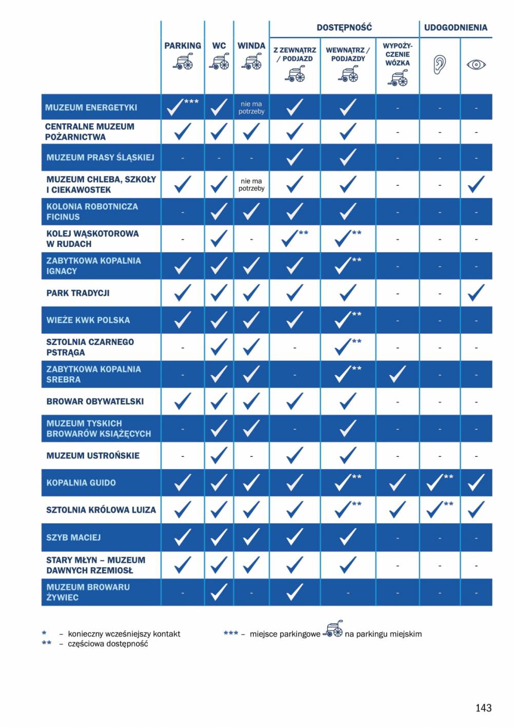Dostępność obiektów Szlaku Zabytków Techniki ulega ciągłej poprawie. W wielu obiektach prowadzone są prace lub przygotowywane są plany nad pełną dostępnością obiektów.
