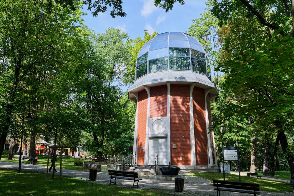 Obierając kierunek zwiedzania od Jasnej Góry, zanim dotrzemy do głównego deptaku miasta będziemy mieć okazję podziwiać Park 3 Maja. Przy jego głównej alejce znajduje się osobliwy obiekt pamiętający czasy Wystawy Przemysłu i Rolnictwa z 1909 r. Budynek, pierwotnie należący do Towarzystwa Akcyjnego „Zawiercie”, w okresie międzywojennym przerobiono na obserwatorium astronomiczne. Współcześnie w ramach Muzeum Częstochowskiego działa tam Multicentrum Zodiak oferujące zajęcia edukacyjne dla dzieci i młodzieży.