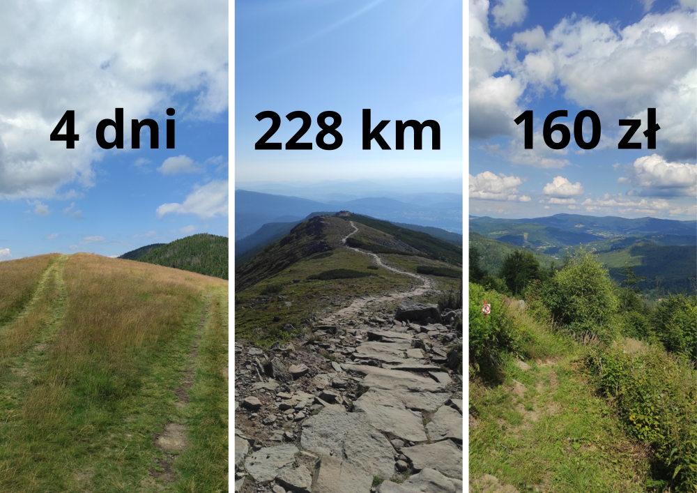 Czterodniowa samotna wyprawa dookoła Beskidów. Start w sobotę o 4:00 rano w Bielsku-Białej, meta w tym samym miejscu, we wtorek o 21:45. Po drodze Beskid Śląski, Żywiecki i Mały. Wielka Pętla Beskidzka dała mi wszystko, czego szukałem, czyli intensywność, zmęczenie, piękno i ciszę. Na szlaku mam przestrzeń do doświadczania siebie przez wysiłek i prostotę. Nie spałem w schroniskach. Noce spędziłem na wieży widokowej, w opuszczonej bacówce oraz awaryjnie, a gdy zaskoczyła mnie burza, pod zadaszeniem bankomatu. Nie jadłem ciepłych posiłków, bo szkoda mi było czasu. Wszystko, czego potrzebowałem, miałem przy sobie. To bardzo surowe podejście, bazujące na maksymalnej prostocie. Cała wyprawa kosztowała mnie 160 zł. Woda ze źródeł, jedzenie z lokalnych sklepów. Komfort jest taki jaki sam sobie zapewniasz. Ale to właśnie taki samotny, oszczędny, dziki styl pozwala doświadczyć drogi najpełniej. Wszystko zbędne odpada. Zostaje tylko szlak, rytm kroków i umysł, który w końcu zwalnia.