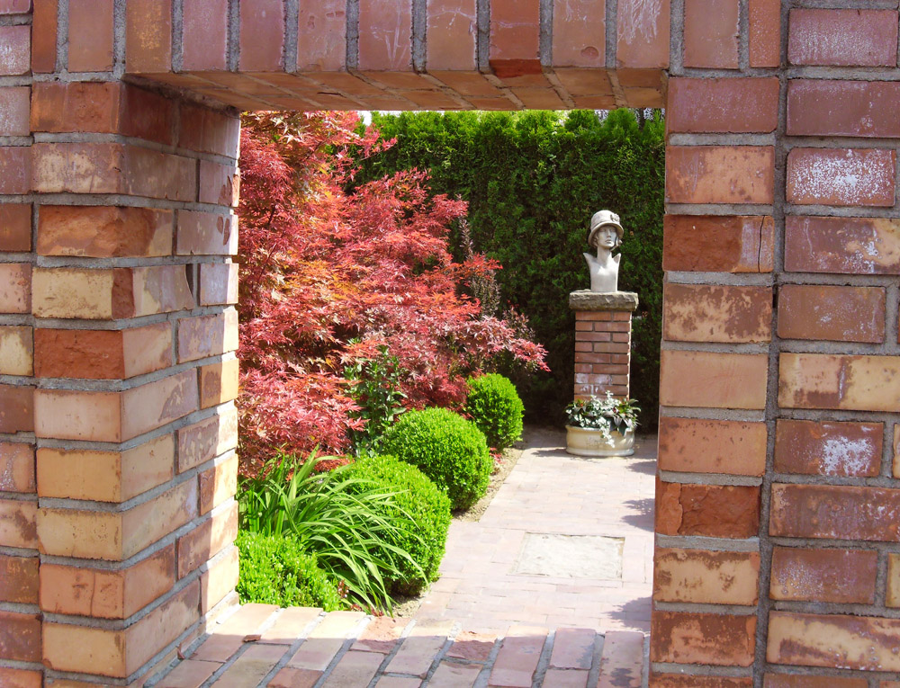 Wszystkie wnętrza ogrodowe są znakomicie zakomponowane, urzekają małą architekturą i bujną roślinnością.
