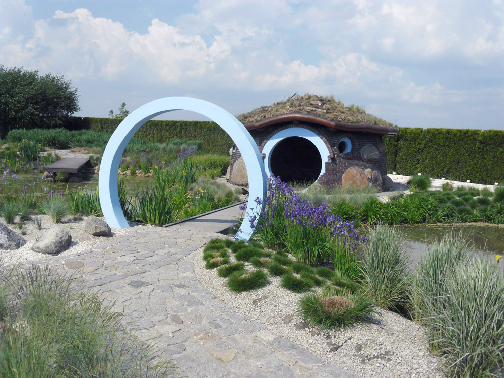 Nieco inne wnętrze prezentuje Ogród Lato z kolekcją traw ozdobnych, stawem i domkiem, porośniętym na dachu trawą. Dzieci nazwały go domkiem Smerfów, ale bardziej przypomina dom hobbita.
