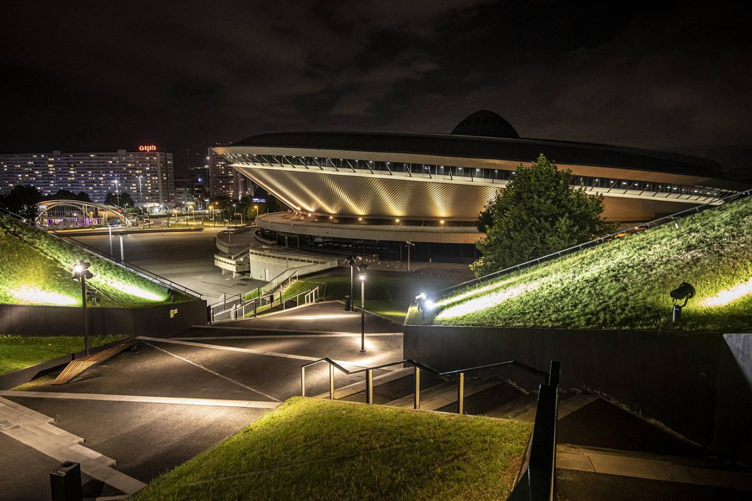 Niezwykła bryła obiektu MCK w połączeniu z zieloną doliną prowadzącą w kierunku Spodka tworzą niepowtarzalny klimat i energię miejsca, gdzie chce się spędzać wolny czas