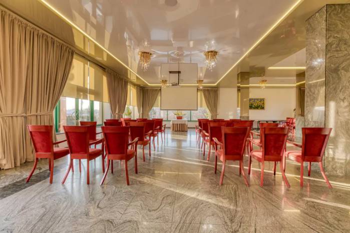 Hotel dysponuje klimatyzowaną salą konferencyjną, przystosowaną do organizacji wszelkiego rodzaju konferencji, seminariów, szkoleń i innych spotkań biznesowych.