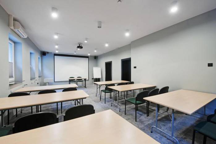 Sala mała, o powierzchni 37 m²., jest idealnym miejscem do organizacji kameralnych spotkań liczących do 18 uczestników. Sala ta posiada dostęp do światła dziennego, klimatyzację i przestronny balkon. Na wyposażeniu sali znajduje się duży telewizor oraz flipchart. Uczestnicy spotkania mają dostęp do darmowego, bezprzewodowego Internetu.