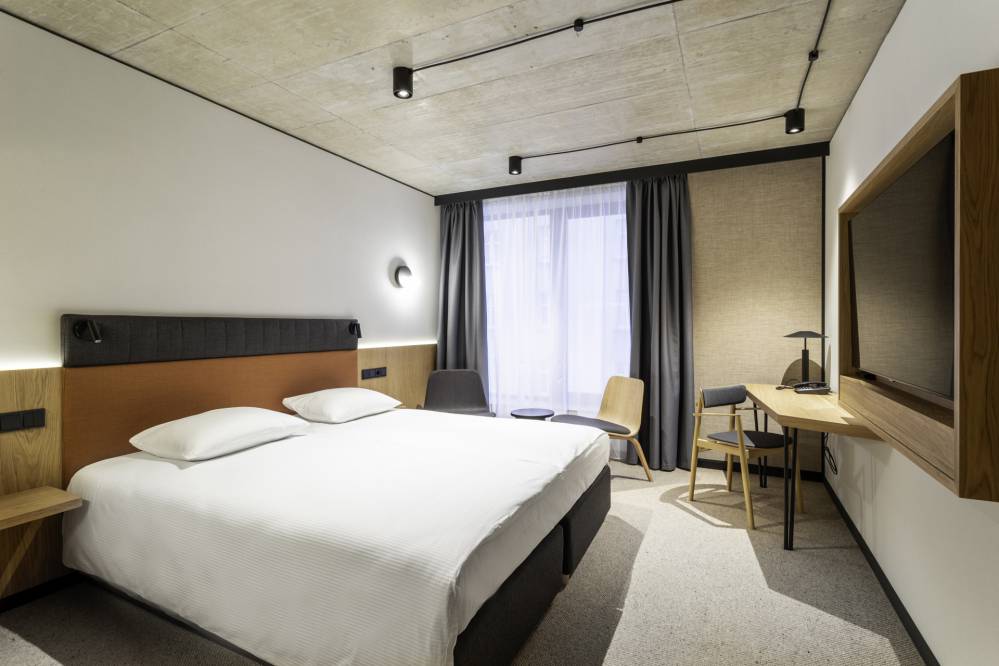 Qubus Hotel to przede wszystkim jakość, dlatego hotel w Katowicach to miejsce, w którym znajdziecie sporo naturalnych, wysokiej jakości materiałów m.in. lite drewno, eleganckie ściany ze szkła strukturalnego, niezwykle miękkie, wełniane wykładziny czy designerski sufit z betonu strukturalnego.