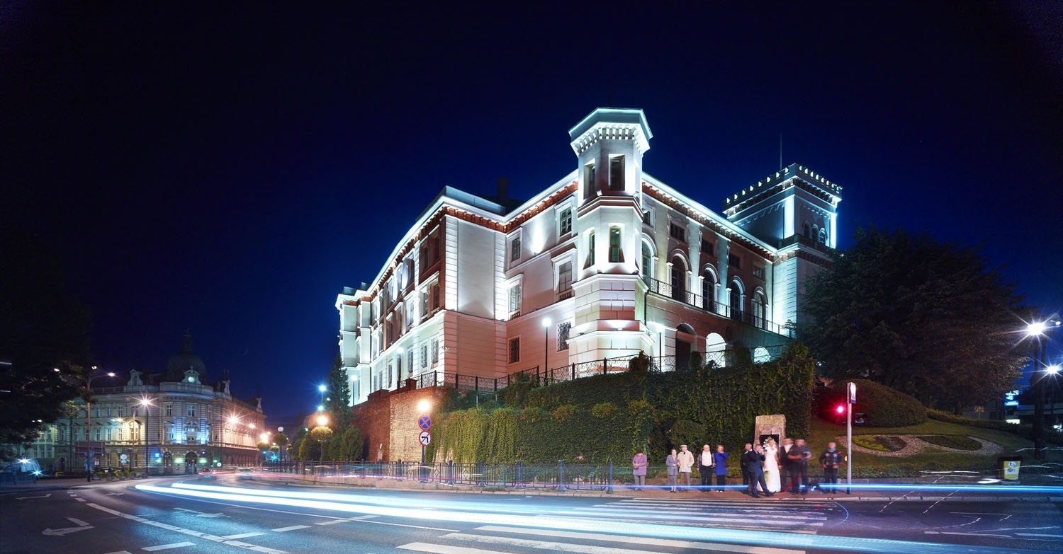 Bielsko zawsze leżało na granicy - czy to pomiędzy księstwami piastowskimi, czy to Polską a Czechami, wreszcie między Galicją a Śląskiem Cieszyńskim. Mocna warownia była więc koniecznością. Pierwszy, solidny zamek wzniósł nad rzeką Białą książę cieszyński Przemysław I Noszak w XIV wieku. Z biegiem lat zamek zmieniał właścicieli, trafiając chociażby w ręce bogatych rodów Promnitzów, Schaffgotschów czy Sunneghów; zmieniały się również jego rola i wygląd. W 1752 roku bielskie posiadłości wraz z zamkiem nabył Aleksander Józef Sułkowski. Jego potomkowie władali nim aż do roku 1945. Wspomniany Aleksander Józef Sułkowski zrobił w XVIII wieku niezwykłą karierę. I to zarówno w Polsce, jak i w państwie Habsburgów, gdzie otrzymał nawet tytuł księcia Rzeszy. Ułatwiło mu ją... królewskie spokrewnienie. Był wszak nieślubnym synem Augusta Mocnego, elektora saskiego, później – króla polskiego. To Sułkowscy odpowiadają za współczesne oblicze zamku. Uległ on bowiem gruntownej przebudowie w drugiej połowie XIX wieku, uzyskując eklektyczny wygląd. Jak wyglądały poprzednie budowle stara się nam uzmysłowić muzeum w Lapidarium, gdzie odsłonięto dawne mury, pokazano detale architektoniczne i polichromie. Samym Sułkowskim także poświęcono niewielką ekspozycję (Gabinet Pana i Damski Salonik).