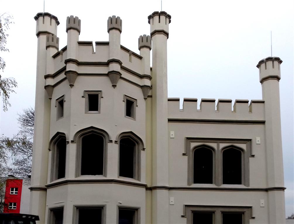 Remont pałacu objął odbudowę oficyny, jej historycznej bryły i detali architektonicznych – na przykład krenelaży, czyli zębatych zwieńczeń murów obronnych i baszt. Odtworzono część ścian oficyny oraz stropy na wszystkich kondygnacjach.