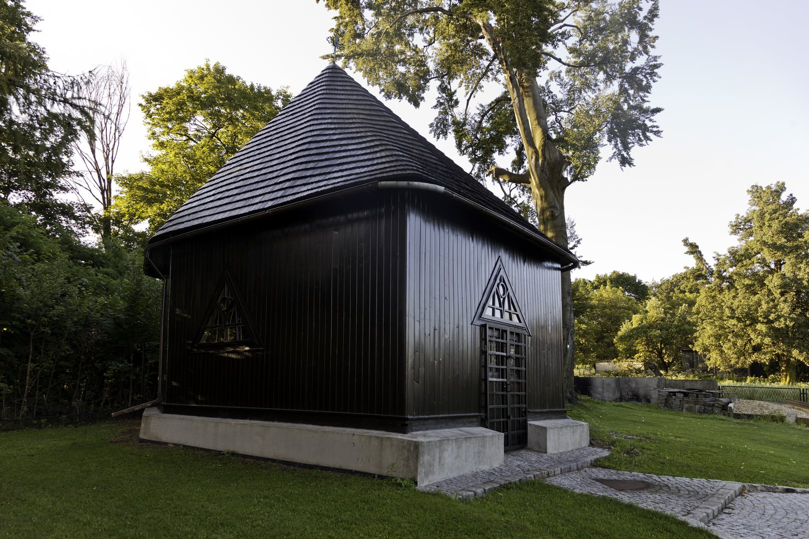 Drewniana kaplica św. Katarzyny Aleksandryjskiej powstała w 1784 roku. Stanowiła wówczas część zabudowań dworu (nieistniejącego), a dziś znajduje się w ogrodzie na tyłach nowoczesnego, parafialnego kościoła Najświętszej Marii Panny Matki Królów. Została przebudowana w 1793 roku, o czym może świadczyć żelazny stopień z taką właśnie datą, a wyremontowana w 1820. Kaplica św. Katarzyny jest drewniana, posadowiona na betonowej podmurówce, na planie zbliżonym do prostokąta. Budynek nakryto gontowym dachem, w ścianach umieszczono trójkątne okna z witrażami o skromnym charakterze. Szczyt budowli zwieńczono charakterystycznym, metalowym krzyżem o ażurowej konstrukcji. Wewnątrz kaplicy znajduje się barokowy ołtarz. Znajdujący się w nim niegdyś obraz przedstawiający św. Katarzynę, w 2005 roku - po odnowieniu - trafił do kościoła.