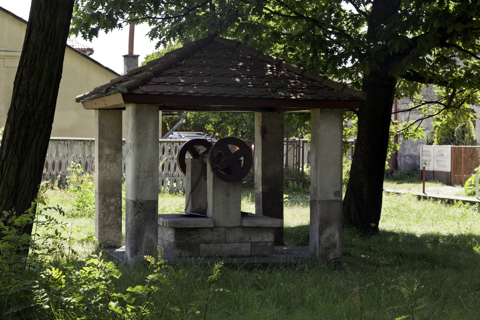 W Jeleniu można znaleźć kilka cennych zabytków architektury – między innymi kościół Podwyższenia Krzyża Świętego z XVII wieku, dwie kaplice i stara studnia, która została zbudowana na Rynku na początku XVII wieku, na trasie dawnego szlaku kupieckiego z Węgier. W pobliżu stał wówczas nieistniejący już dziś dom zajezdny. Ze studni korzystali okoliczni mieszkańcy, a także przyjezdni, którzy przybywali na comiesięczne targi – trzeba pamiętać, że dawne rynki miejscowości pełniły przede wszystkim rolę placów handlowych. Jeleńską studnię przykrywa spory, czterospadowy dach, pokryty dachówką, wsparty na czterech słupach, ozdobiony figurką biegnącego jelenia, umieszczoną na szczycie. Nad kamiennym cembrowaniem, na dwóch również kamiennych cokołach, wsparto kołowrót z łańcuchem.