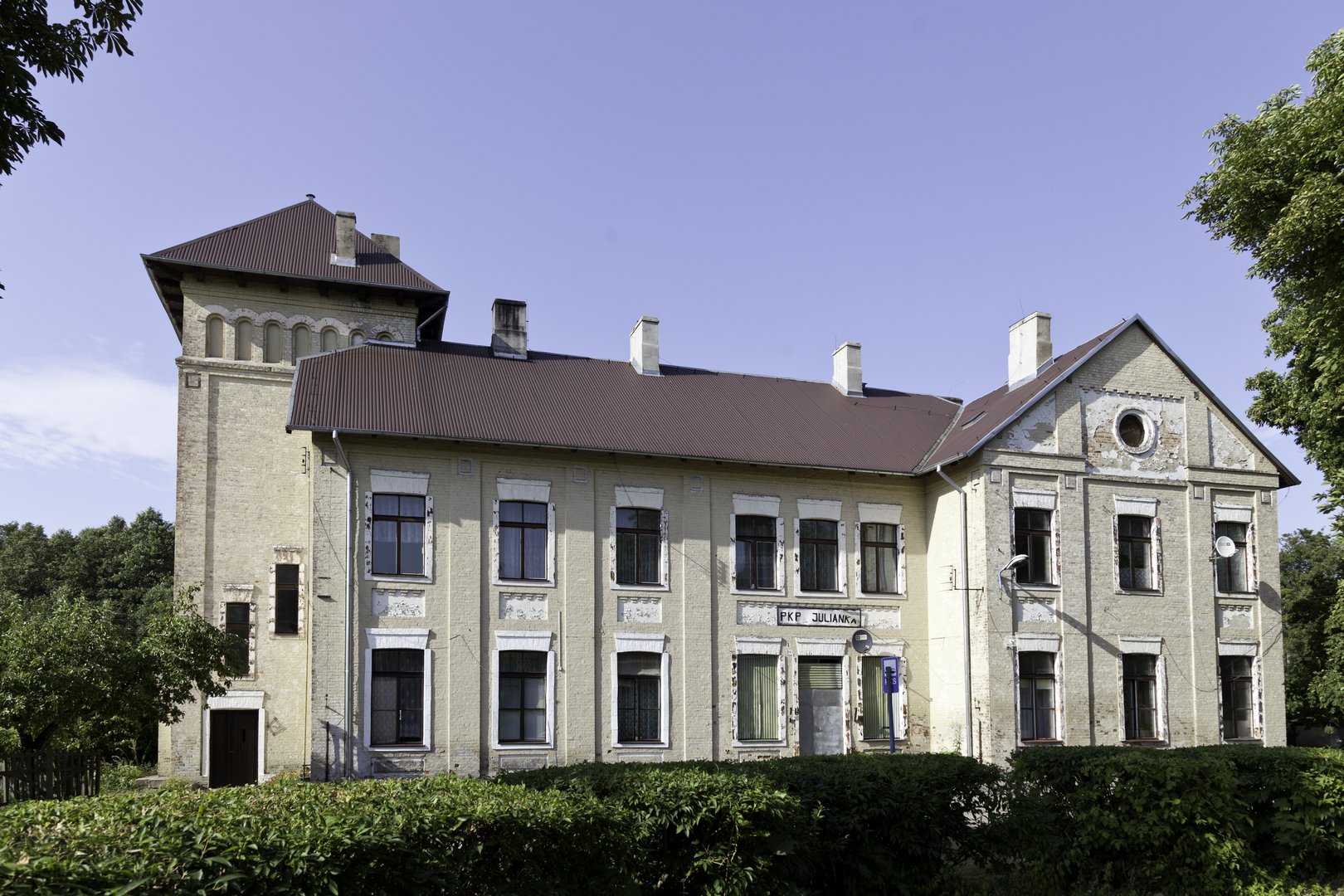 Julianka to nieduża wioska, położona wśród lasów Jury Krakowsko-Częstochowskiej. Odnajdziemy ją kilka kilometrów na północ od Janowa, na lewym brzegu Wiercicy. Miejscowość w 1911 roku uzyskała połączenie ze światem, dzięki wybudowaniu tutaj stacji kolejowej na nowo powstałej linii Kielce–Częstochowa. Trasa ta nazywana jest obecnie Koleją Herbsko-Kielecką. Jako że kolej została położona na obszarze zaboru rosyjskiego, posiadała szeroki rozstaw torów. W linię normalnotorową przekształcili ją dopiero Niemcy podczas I wojny światowej. Stacja w Juliance służyła między innymi do obsługi rozległych dóbr hrabiów Raczyńskich, których siedziba znajdowała się w pobliskim pałacu w Złotym Potoku. Była także świadkiem powitań i pożegnań gości hrabiostwa, wśród których znajdowali się m.in. przedstawiciele najbardziej znanych polskich rodów arystokratycznych. Dworzec kolejowy w Juliance, mimo, że nieczynny i popadający w ruinę, wciąż robi wrażenie. Budynek stacyjny jest dwukondygnacyjny, a przylegająca do niego, przykryta dachem namiotowym wieża ma kondygnacji cztery. Przy torowisku wybudowano jeszcze jedną wieżę - ciśnień, dostarczającą niegdyś wodę do parowozów. Warto się jej przyjrzeć - szczególnie dachowi zbiornika, w kształcie dzwonu z latarnią. Za torami znajdziemy drewniany krzyż, pod którym czasem płoną znicze. Upamiętnia on ofiary katastrofy kolejowej, do której doszło w tym miejscu 3 listopada 1976 roku. Pijana obsługa jednego ze składów doprowadziła wówczas do zderzenia, w wyniku którego zginęło 25 osób, a 79 zostało rannych. To jedna z najtragiczniejszych (pod względem liczby ofiar) katastrof kolejowych w powojennej Polsce.
