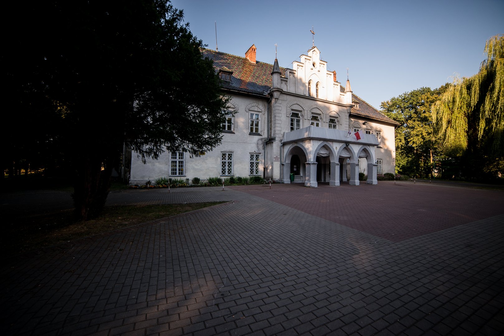 Murowany, obronny dwór w Łodygowicach wznosić zaczął książę Jerzy Zbaraski w roku 1630. Nowa budowla zastąpić miała stary, drewniany dwór. Po śmierci Zbaraskiego tutejsze dobra stały się własnością Wiśniowieckich, potem zaś - jako wiano - trafiły w ręce Stanisława Warszyckiego. Ten zaś, wojewoda mazowiecki i kasztelan krakowski, był w owych czasach bohaterem licznych awantur, znanym z niezbyt uczciwych interesów i postępków, a przy tym miał też ujawniać sadystyczne skłonności wobec swych bliskich oraz poddanych. Warszycki postanowił kontynuować budowę rezydencji. W 1673 r. dwór otoczony został nowymi fortyfikacjami. Miały one stanowić zabezpieczenie w niespokojnych czasach, gdy okoliczne tereny były łupione nie tylko przez wroga, ale i nieopłacane wojska krajowe. Warszycki sam zresztą też nie gardził najazdami na ziemie sąsiadów. Z początkiem XVIII w. przedstawiciele rodu Warszyckich spierali się o majątek, także przy użyciu przemocy. Jeden z nich, Jerzy, w 1709 r. zajął rezydencję siłą. Po okresie przynależności do Warszyckich, łodygowicka fortalicja w latach 30-tych XVIII w. wraz z tutejszymi dobrami przeszła w ręce Borzęckich, a następnie kolejnych rodów. Budowla przez pewien czas, szczególnie w wieku XIX, dość często zmieniała właścicieli - zarówno arystokratów, jak i kupców. W 1866 r. majątek zakupiła Klementyna Primovesi de Weber, będąca żoną austriackiego majora, Adolfa Klobusa. Oni to dokonali gruntowanej przebudowy, podczas której obiekt utracił dotychczasowe cechy dworu obronnego. Powstały wówczas arkady wejściowe, neogotyckie attyki oraz charakterystyczny, glazurowany dach. Zmienione zostały także wnętrza. Pałac znajdował się w rękach rodziny Klobusów do śmierci ostatniego przedstawiciela rodu, Otto Klobusa, w 1942 r. W 1945 wnętrza obiektu zostały gruntownie okradzione. Później łodygowicki pałac pełnił różne funkcje.