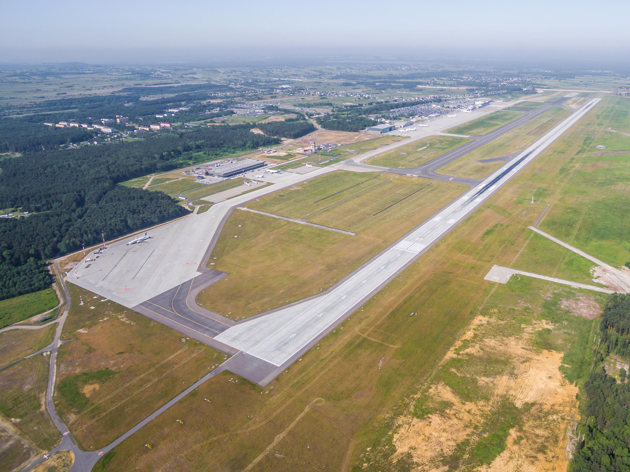 Równocześnie, w latach 90. XX wieku, lotnisko zagospodarowywało już lotnictwo cywilne. Międzynarodowy Port Lotniczy „Katowice” w Pyrzowicach (lotnisko Katowice). należy do trzech największych w Polsce. Dysponuje dwoma terminalami pasażerskimi (mogą obsłużyć około 3,5 mln pasażerów rocznie) i jednym terminalem cargo (ilość przewiezionych towarów plasuje Pyrzowice na drugim, po Okęciu, miejscu). Lotnisko Katowice dysponuje nowoczesnymi systemami wspomagającymi lądowanie.