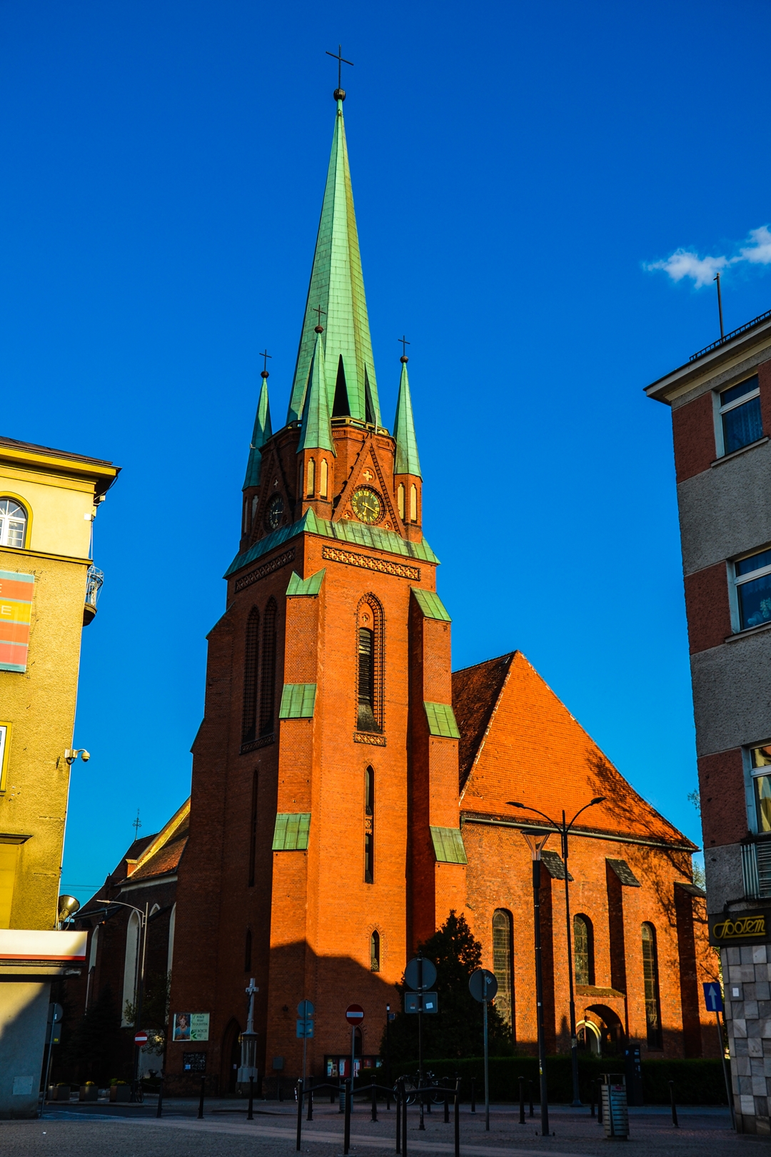 Jedna z najstarszych górnośląskich świątyń parafialnych, jedyna, która zachowała cechy wczesnego śląskiego gotyku. Wedle tradycji, została ufundowana w 1205 r. w czasach księcia Mieszka, syna Władysława II Wygnańca, w centrum powstającej osady miejskiej, dla której prawo flamandzkie zostało poświadczone źródłowo już w 1217 r.