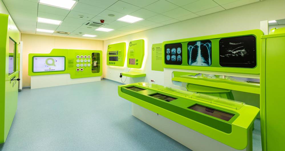 Bogactwo zastosowanych form wystawienniczych pozwala na różnorodne formy zwiedzania dostosowane do możliwości odbiorców od zabawowej przeznaczonej dla najmłodszych, poprzez interaktywne do tradycyjnych plansz i ekspozytoriów. W trakcie wędrówki po dawnych salach szpitalnych poznajemy różne oddziały szpitalne i specjalności medyczne (np. SOR, okulistyka, ortopedia, chirurgia, urologia, dermatologia). Na poszczególnych stanowiskach, często interaktywnych, przedstawiamy elementy anatomii człowieka (np. budowa oka – na okulistyce), narzędzia i technologie medyczne stosowane w określonej specjalizacji.