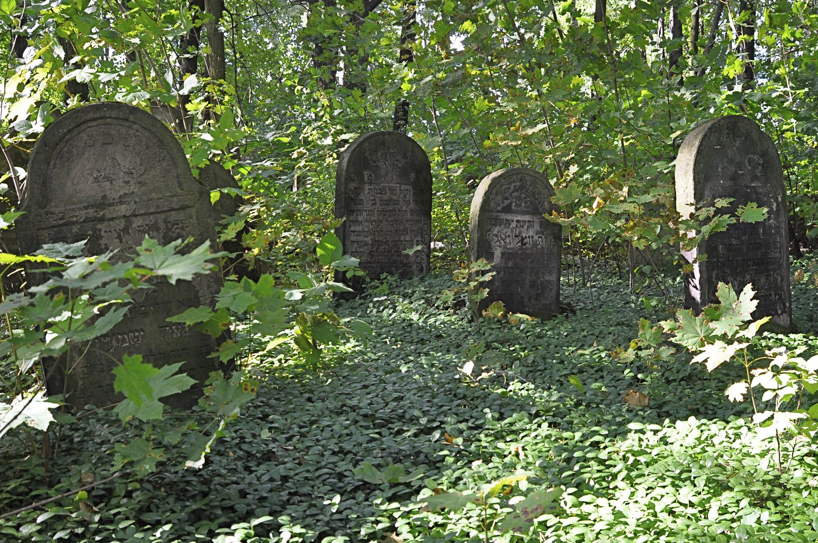Najstarsze pochodzą z XVIII wieku; większość z nich ma kształt typowej macewy. Spotkać na nich można inskrypcje w języku hebrajskim, jidysz i polskim. Spośród nagrobków wyróżnia się ohel rabina Izraela Lejb ben Jakuba. Wiele macew posiada ładną ornamentykę. Ciekawostką jest ta, na odwrocie której zachował się odcisk amonitu – dowód na to, że pochodzi z miejscowych kamieniołomów wapienia.