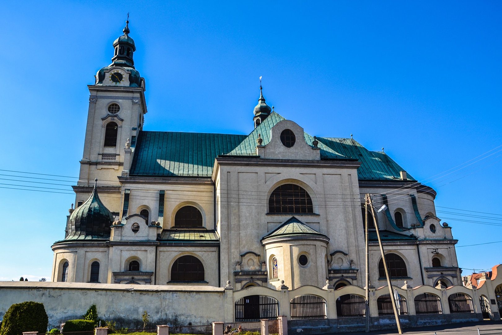 Świątynia jest potężną budowlą, posiada 48 metrów długości, nawa główna posiada 27 metrów szerokości, a z kaplicami 35 metrów. Sklepienie posiada 17 metrów wysokości, natomiast w kopule jest wysokie na 20 metrów. Wieża posiada 56 metrów wysokości.