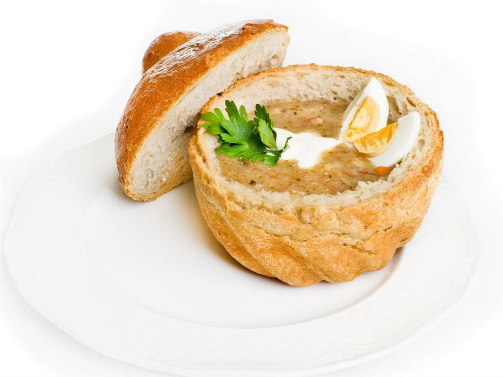 Ugotować żeberka (lub kiełbasę), następnie wyjąć je i pokroić, włożyć z powrotem. Suszone grzyby wcześniej ugotować osobno. Pierwszą wodę z zagotowanych grzybów odlać, potem zalać ponownie wodą i gotować na wolnym ogniu. Grzyby świeże można albo obgotować w osolonej wodzie, albo podsmażyć na maśle. Do garnka dodać przyprawy i grzyby wraz z wywarem, gotować na wolnym ogniu pod przykryciem. Kiedy mięso zmięknie, wlać powoli przygotowany zakwas. Na koniec zatrzepać dwoma jajkami. Podawać z ugotowanymi ziemniakami okraszonymi cebulką i boczkiem.