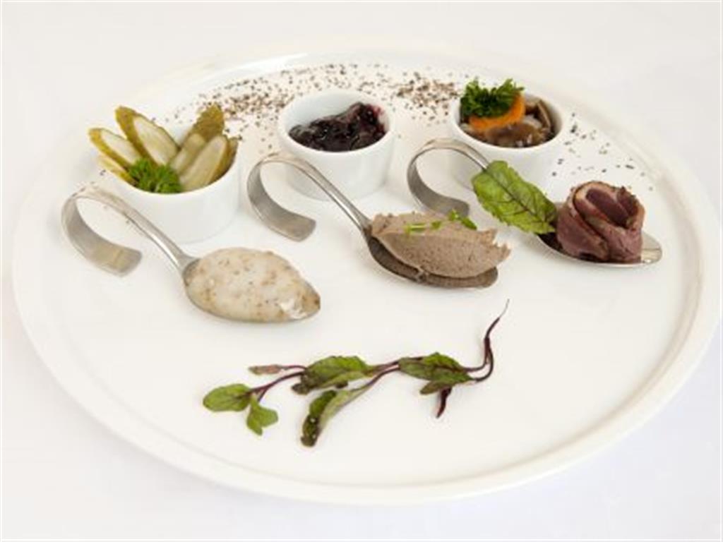 Pierś gęsią peklujemy w peklosoli przez 8 dni, następnie wędzimy tradycyjnie na drzewie owocowym (tj. wiśnia, gruszka). Wędzimy na ciepło. Jako dodatek do gęsi podajemy szałot śląski przygotowany z ogórka kiszonego, ugotowanych ziemniaków i marchwi, podsmażonego boczku wędzonego, jajka, cebuli posiekanej w drobną kostkę oraz przypraw: musztardy, soli, pieprzu. Całość otaczamy pietruszkową galaretką. Wykładamy na talerz i dekorujemy świeżym lubczykiem.