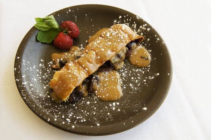 Śliwki mieszamy z rodzynkami i zasypujemy cukrem pudrem. Ciasto należy rozwałkować na kształt prostokąta. Na brzegu ciasta wykładamy farsz i całość zawijamy na kształt bochenka. Pieczemy w temp. 180˚C.