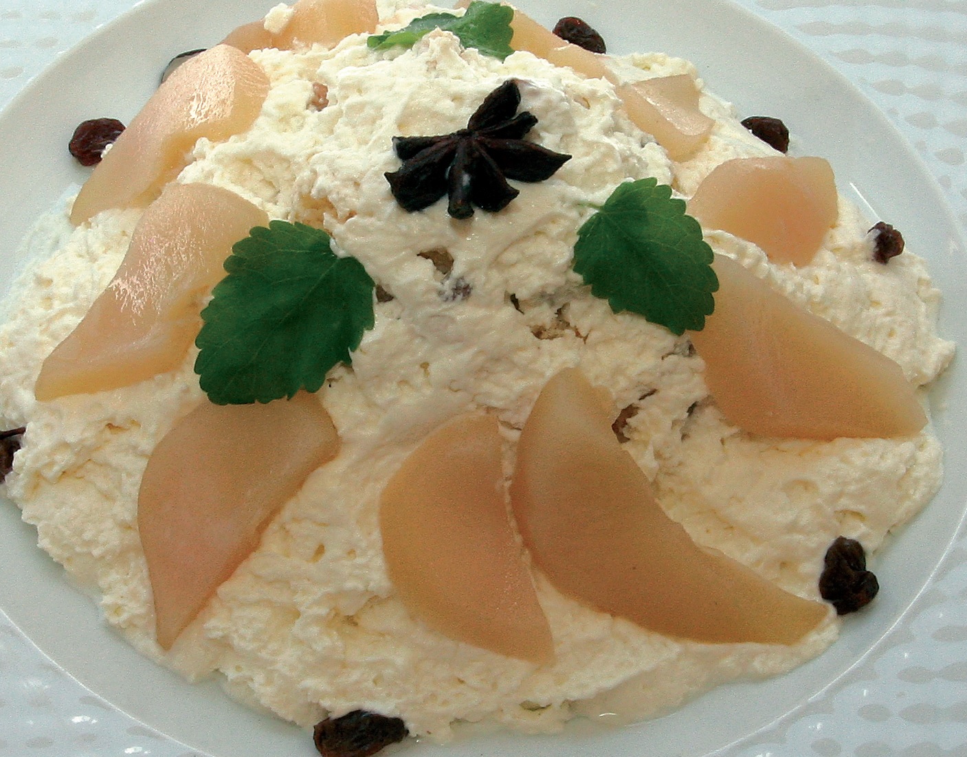 Kruszony biszkopt ugniatamy z masłem i bakaliami (orzechami, kokosem, rodzynkami) i nasączamy żubrówką. Podajemy na talerzu z bitą śmietaną oraz gruszką o aromacie anyżu w formie wypukłej kopy przyozdobionej melisą.