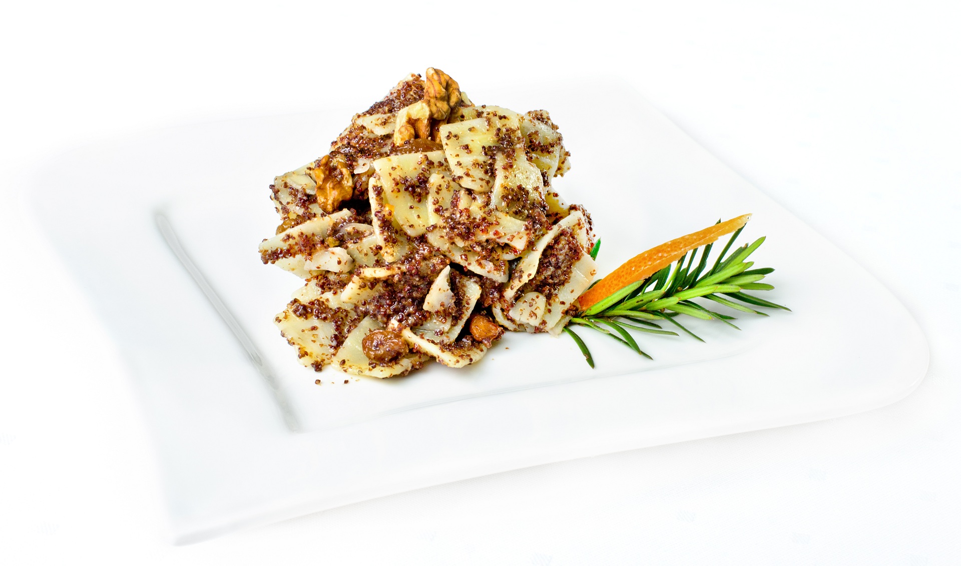 Makaron ugotować, odcedzić. Rodzynki sparzyć, by zmiękły. Do masy makowej dodać orzechy, sparzone rodzynki, miód. Wszystko wymieszać razem z makaronem. Jeśli masa wychodzi zbyt sucha, można dodać gorącego mleka.